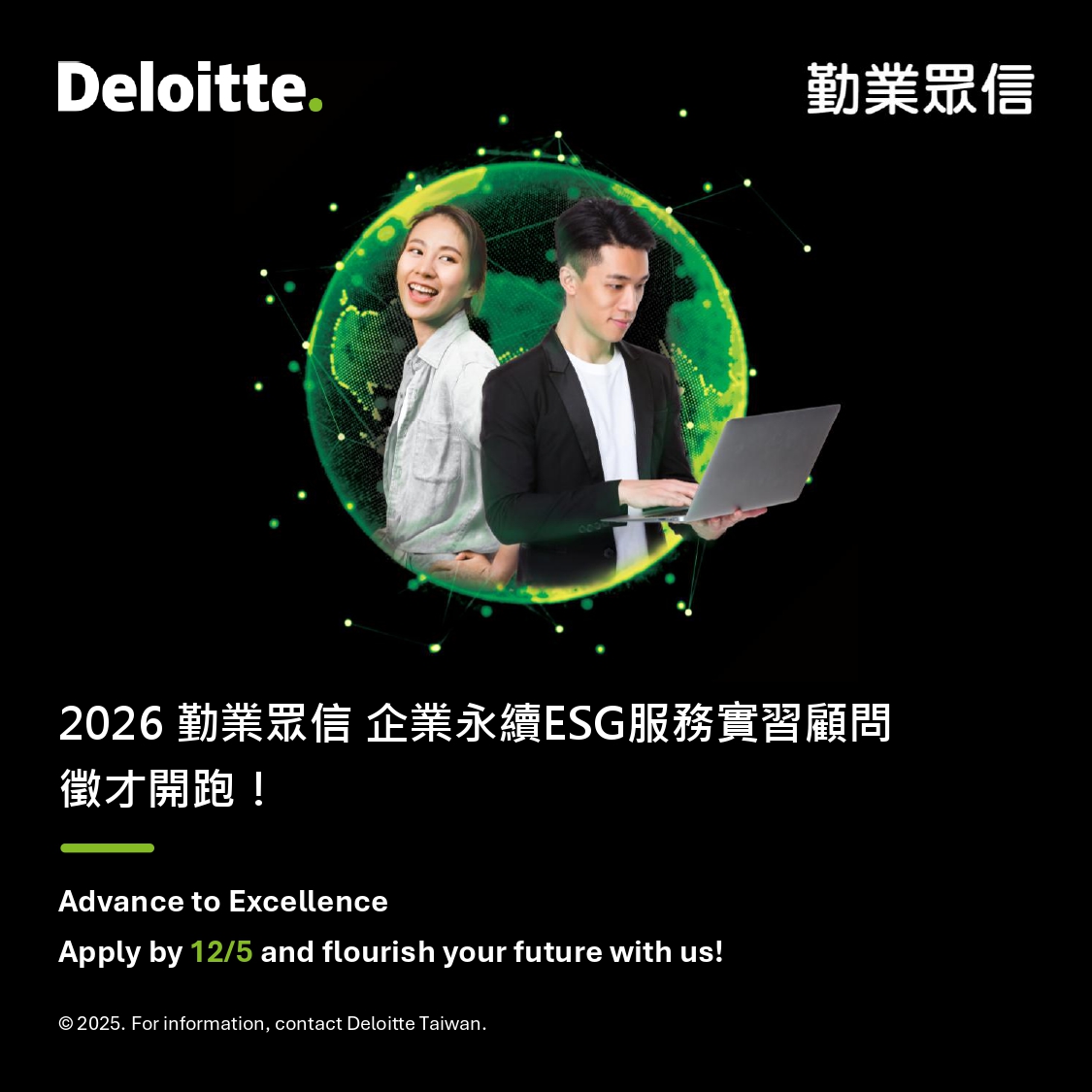 【勤業眾信Deloitte】企業永續ESG服務實習顧問 現正招募中!